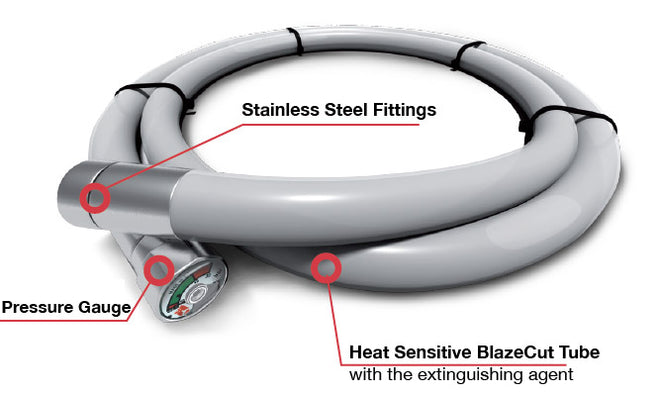 The special heat sensitive tubing acts as both detection device and storage container, guaranteeing discharge when necessary
